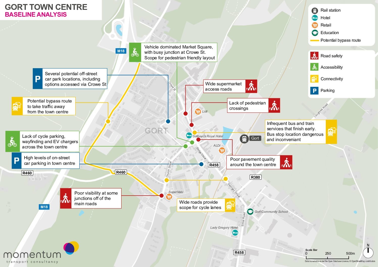 Momentum provided transport advice to inform the design and delivery of the Gort Town Centre Masterplan. Our input covered parking strategy, servicing, cycling facilities and road layout, helping to balance reduced traffic dominance with continued access for businesses while supporting a safer, more attractive and sustainable town centre.